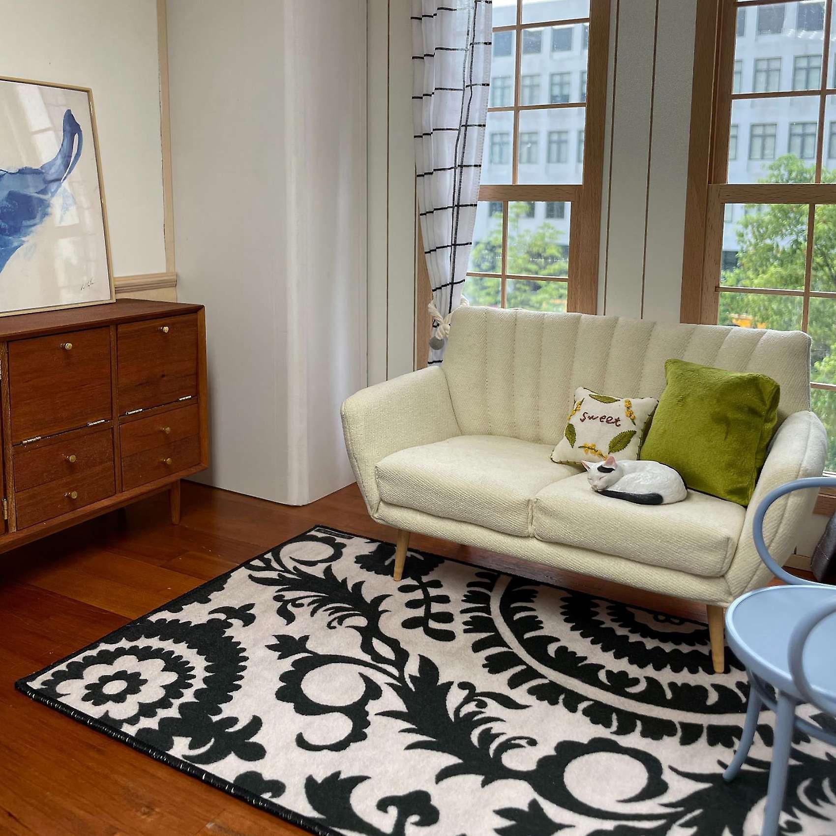1/6 Dollhouse Model Furniture Accessories Mini Carpet, Black White