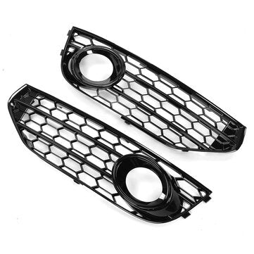 1 Pair Honeycomb Front Grill Bumper Fog Light Cover Grille For Audi A4 B8 B8.5 ALLROAD 2009-2015