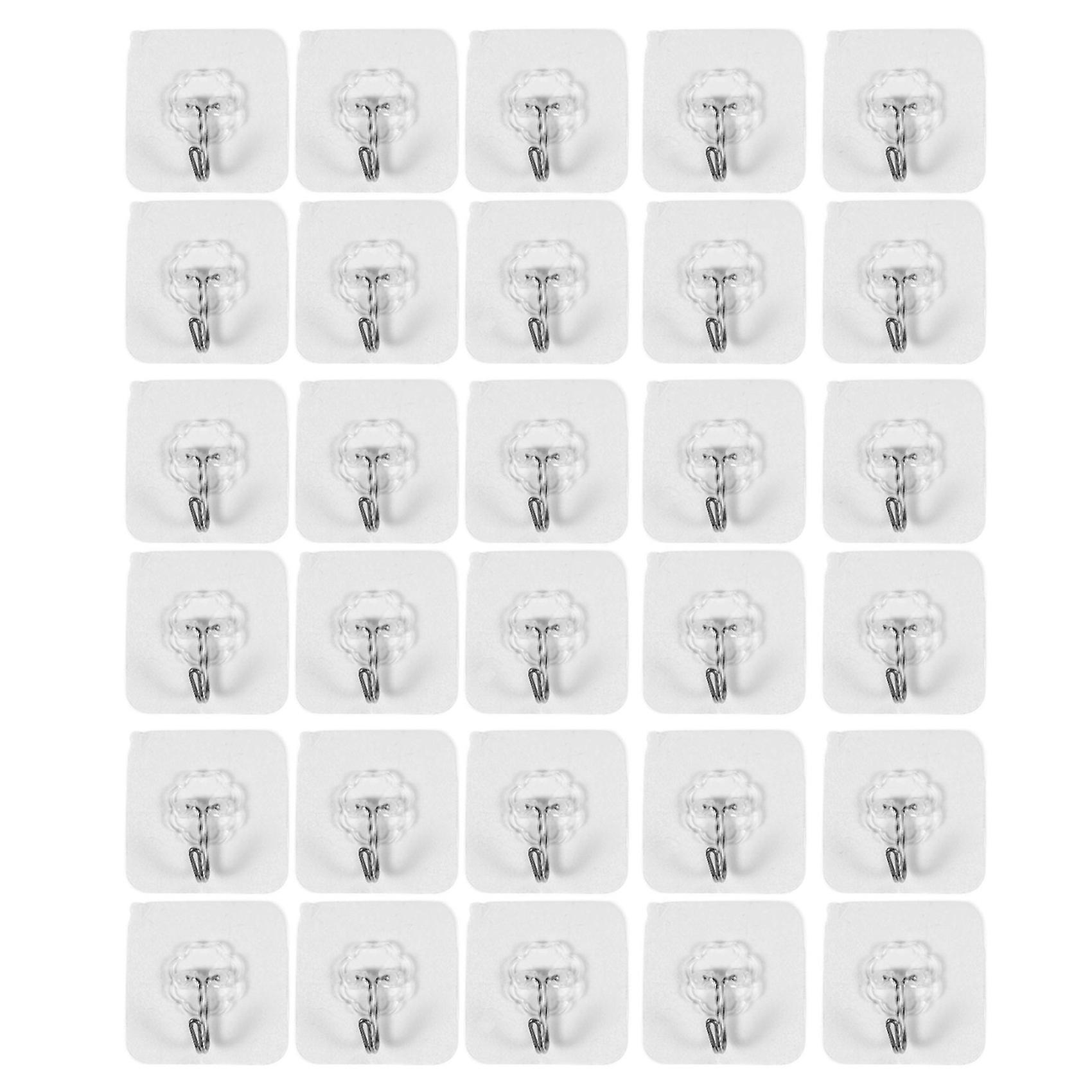 Transparent Wall Hooks: Unique transparent design makes it almost invisible and without surface damage which is quite suitable for nice home decorationReusable Utility Hooks: It can be utilized repeatedly after cleaning and dry, No tools required, just peel off the cover to use and easy to repositionHeavy Duty Hanger: Stable and reliable, maximum bearing of wall hooks is up to 13.2lb/6KG heavy loadsPerfect Hooks for hanging shower and bath accessories in a bathroom, or organizing kitchen utensils and tools, or hanging keys, clothes, coatWidely used on wood, glass,glass grid,ceramic tiles,metal surfaces,non-paint walls and other kind of hard flat surface(please pay attention that there are limits on painted walls)size: 6 x 6cmMaterial:pvc + metalColor:Transparent colorInstruction:Clean the surface from oil/dust/water. Do keep dry before put the hook on;Peel off the cover (a transparent protective film), do not touch the adhesive surface side;Paste to the wall and push hard to extrude the internal air;Please do wait 24 hours before attaching anything to these hooks.Removing:Press and hold the center position of the base of the hook, then remove the hook from side SLOWLY. No residue/mark will left. to be faster, you can use a hair dryer to heat it firstly, then remove it SLOWLY.Kindly Note:Do not wipe the adhesive base with a towel or paper towels.Please clean the adhesive surface with water if it has dust covered before reposition the hook.Please do not hang fragile goods or dangerous goods on itplease do not try to stick against painted wall, the adhesive is pretty strong, it will peal off your paintingPackage Contents:30pcs x hook upOnly the above package content, other products are not included.Note: Light shooting and different displays may cause the color of the item in the picture a little different from the real thing. The measurement allowed error is +/- 1-3cm.