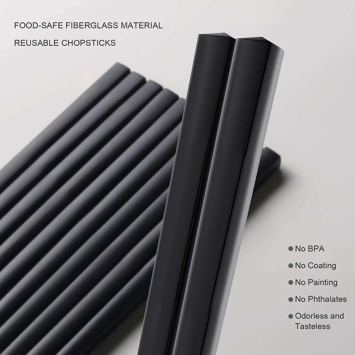 HEALTHY AND SAFE - Chopsticks Reusable, Be Made From High-Quality Fiberglass Material with Temperature Resistance Up to 250, No Painting, More Than Metal, Titanium Material Lighter Easier to Holder, No Odor, Bpa-Free, No Coating, No Paint, The Best Gift for Family and Friend.EASY TO CLEAN AND DISHWASHER SAFE - Our Reusable Chopsticks Dishwasher Safe, Using Material Is Heat Insulated, They Will Never Melt, Crack Or Bend, No Splinters, No Food Residue Absorption, No Soapy Residue Permeates, Our Fiberglass Chopsticks Much More Durable Than Wood Or Bamboo Made Chopsticks, 2-5 Years Use Like New.UNIQUE NON - SLIP DESIGN - Our Chopsticks with Square Cylinder Design Increase Grip and Effectively Prevent Accident Slipping, Which Makes It Easy to Holders, Non-Slip Prevents Food From Falling Off Between Your Chopsticks Avoiding Some Embarrassments At Dinner Even for First-Time Users.WIDELY APPLICATION - Our Chopstick Reusable Korean Japanese Chinese Thailand Vietnamese for Food and Cooking, Widely Application In Family, Diners, Caterers, Buffets, Travel, Cafeterias, Cafes, Store The Best Choice, Our Chop Sticks Easy to Use Easy to Clean Loved By All Users.Why Choose Our Chopsticks - they look elegant and polished, but they do not have any lacquer coating or paint, the heat won't be transferred to the hands and cause burns to the fingers.colour: blackMaterial: fiberglassSize: length 24cmPackage Contents:10 Pairs x ChopsticksOnly the above package content, other products are not included.Note: Light shooting and different displays may cause the color of the item in the picture a little different from the real thing. The measurement allowed error is +/- 1-3cm.