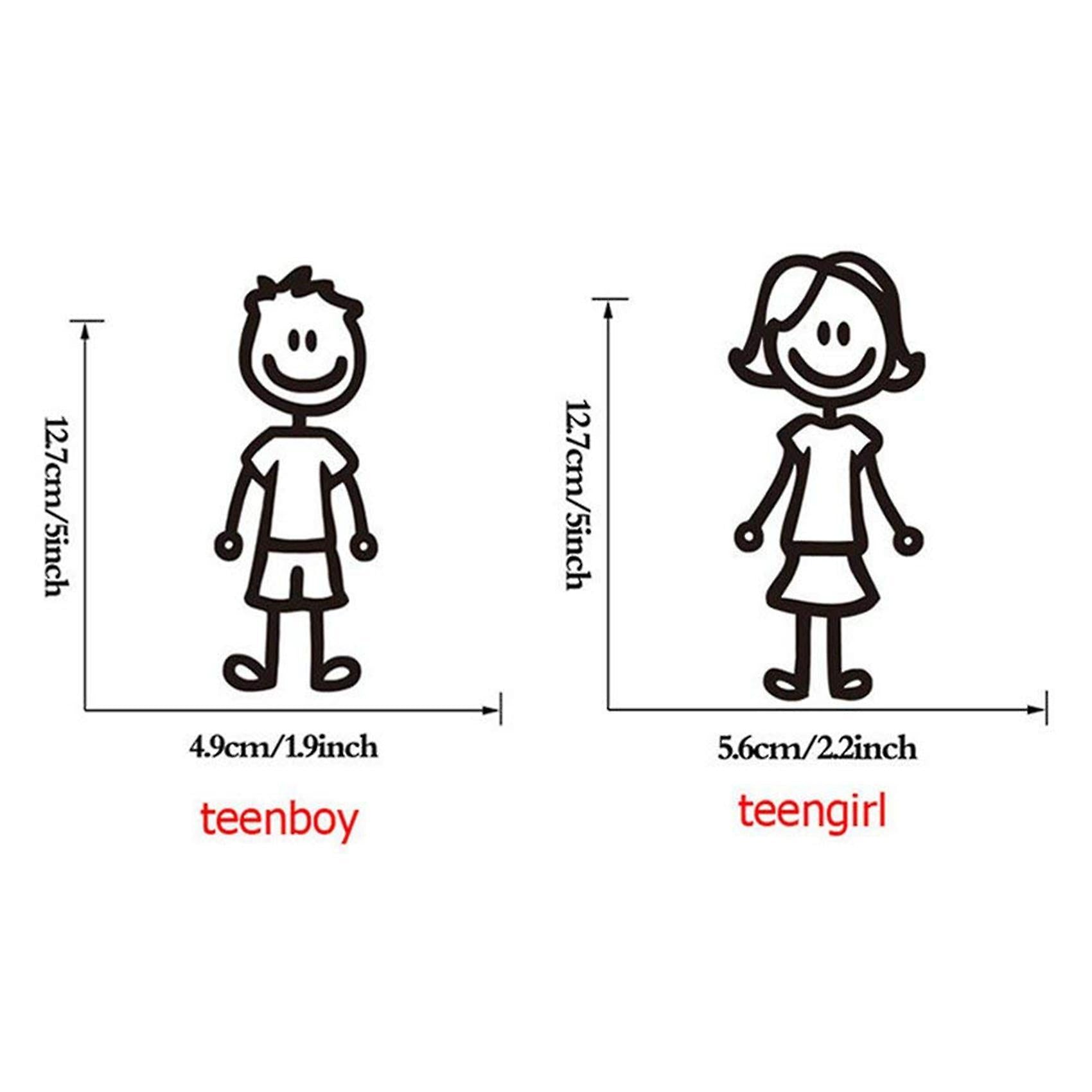 the sticker is durable.The reflective design provides a strong visual impact.Can be applied to the cleanest and smoothest surface of your car, such as bumper, rear view mirror, rear, etc.Easy to install, just pull off and insert.Make your car more special and eye-catching.Color: BlackMaterial: PlasticSize:Size of the Teen Boy: 4.9 x 12.7 cm / 1.9 x 5 inch.The size teengirl: 5.6 x 12.7cm / 2.2 x 5inch.Size of the boy: 4.6 x 10.2 cm / 1.8 x 4 inch.Size of the girl: 5.2 x 10.2 cm / 2 x 4 inch.Size of the dog: 4.9 x 6.4 cm / 1.9 x 2.5 inch.Size of the cat: 5.6 x 6.4 cm / 2.2 x 2.5 inch.Size of baby girl: 6.7 x 7.4 cm / 2.6 x 2.9 inch.Size of the baby boy: 7.7 x 7.4 cm / 3 x 2.9 inch.Package contents:20 x Car Pet Car StickerOnly the above package content, other products are not included.Note: Light shooting and different displays may cause the color of the item in the picture a little different from the real thing. The measurement allowed error is +/- 1-3cm.