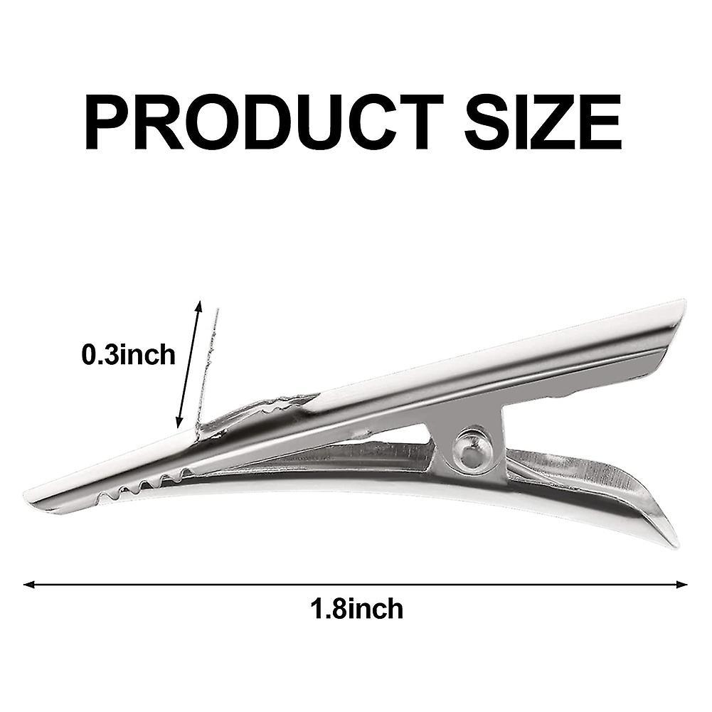 Sturdy and durable: the alligator clips made of nickel-plated have a smooth surface, rust, and corrosion-resistant, anti-oxidation, sturdy and durable.Size: 1.8 x 0.3 inch. max jaw open width: 7.2 mm / 0.28 inch strong conductivity: the alligator clips made of high-quality metal have good electrical conductivity.Multi-function: they are versatile and suitable for home, automotive use, perfect ly used for DIY soldering helping hands devices; alligator clips can be used as miniature clamps to hold parts together and can be used to clip photos or paper.To avoid danger, keep the products away from babies and children.Colour:silverMaterial:MetalPackage Contents:100 * alligator clipsOnly the above package content, other products are not included.Note: Light shooting and different displays may cause the color of the item in the picture a little different from the real thing. The measurement allowed error is +/- 1-3cm.
