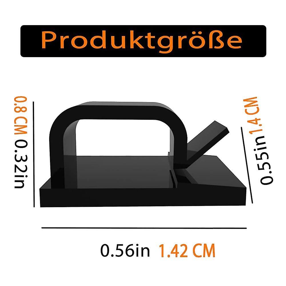 [Cable clips set] Cable holder Cable clips, self-adhesive, for quick and easy attachment of cables with an outer diameter of up to 16 mm.[Self-adhesive cable holder] The use of the self-adhesive pad on the underside of the cable holder is particularly practical. Simply find the appropriate location, remove dust and dirt and stick the cable holder on.[Desk & Wall Organizer] with our self-adhesive cable clamps, you can route the cables exactly along the wall or desk according to your wishes, thus ensuring the security you want.[Wide use] Cable clamps widely used in home, office and automobile. Especially for power cords, charging cables, USB cables, network cables, laptop power cables, etc.[Note before use] Make sure that the mounting surface is clean. No dirt, dust, grease and wax. Please do not insert the cable immediately after the cable clip is pasted on the surface. The double-sided adhesive pad achieves the strongest adhesion after 24 hours.Color:BlackMaterial:PlasticsSize:8.8 x 14.2 x 13.6mmPackage Contents:100 x Cable holderOnly the above package content, other products are not included.Note: Light shooting and different displays may cause the color of the item in the picture a little different from the real thing. The measurement allowed error is +/- 1-3cm.