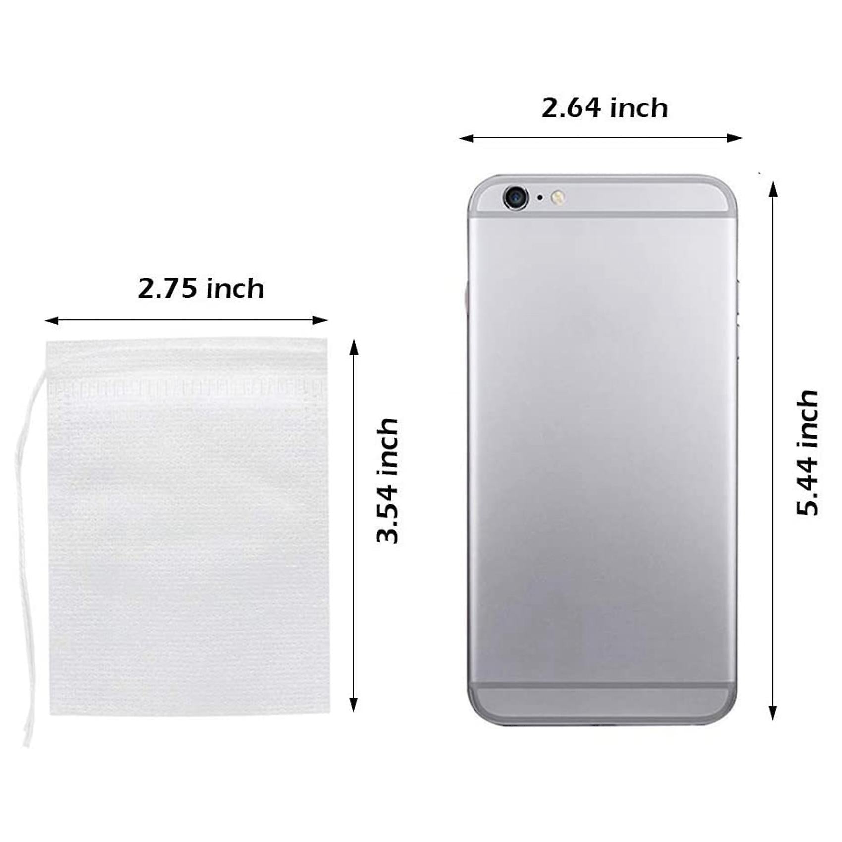 Size: 2.7 x 3.5 inches (7 x 9 cm), moderate size, used for making tea, not too small or too big.Easy to use: with drawstring for easy closure, suitable for bulk tea, spices, etc. (do not use hot iron or electric iron)Colour:WhiteMaterial:Non-woven fabricPackage Contents:100 * empty tea bagsOnly the above package content, other products are not included.Note: Light shooting and different displays may cause the color of the item in the picture a little different from the real thing. The measurement allowed error is +/- 1-3cm.