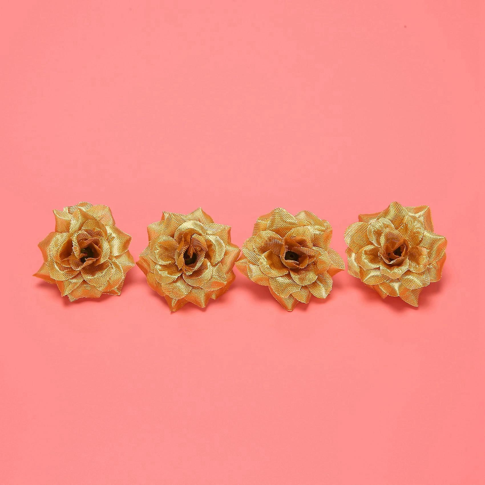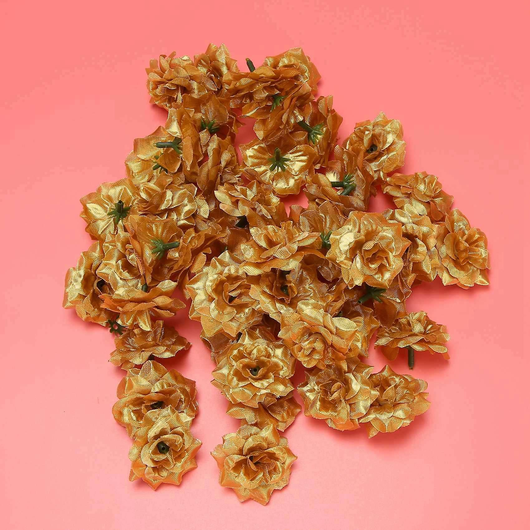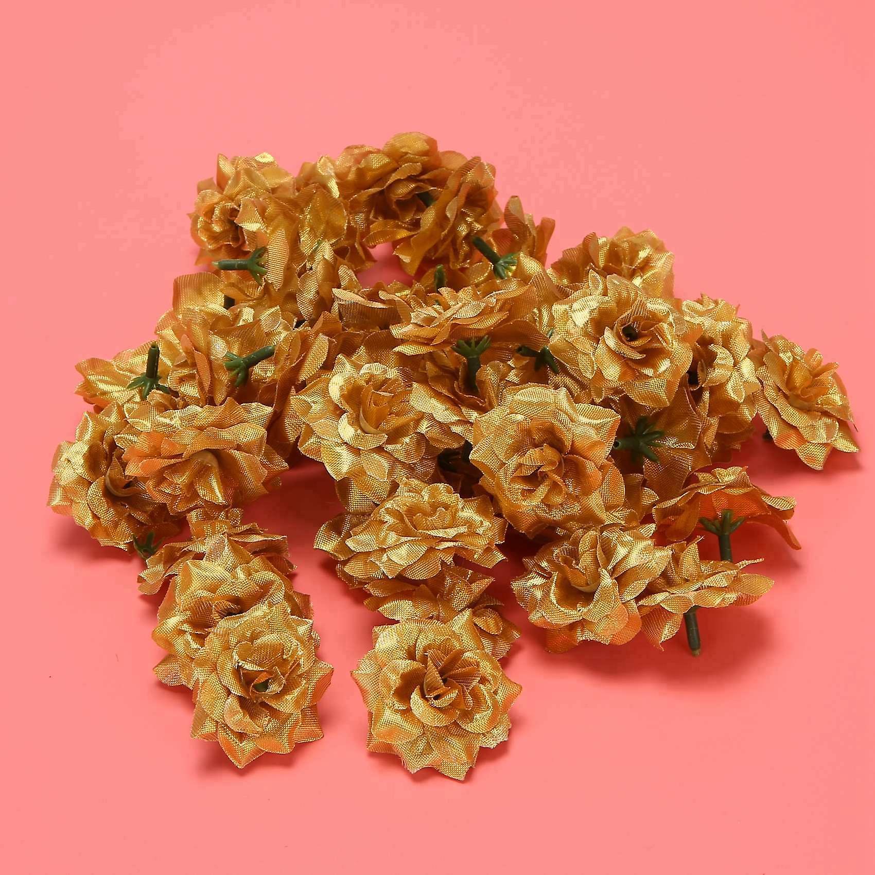 100 Stk. Seide Rosen Kuenstliche Braut Clips Blumenkoepfe (golden)
