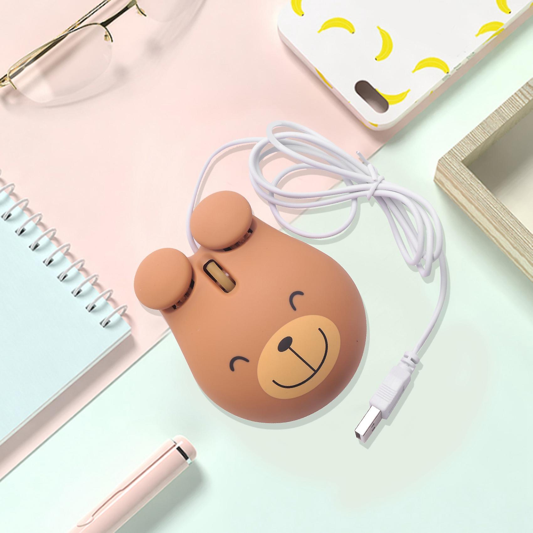 1000 Dpi Wired Optical Gaming Mouse Cute Bear Animal Brown Plastic
