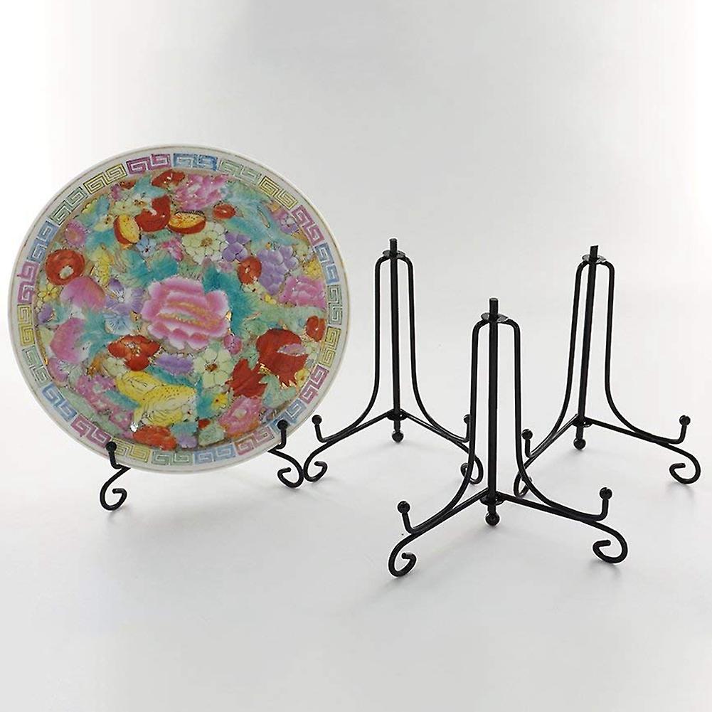 Perfect for holding picture frames, small cookbooks, decorative platesDurable and sturdy stand, built to last.The stands can make focus on your showpiece and not the Display Standare suitable for the small and lightweight plate.colour: blackMaterial: metalsize: Height: 10.2cm,Applicable plate diameter: 10-12cmPackage Contents: 4 * wrought iron plate holdersOnly the above package content, other products are not included.Note: Light shooting and different displays may cause the color of the item in the picture a little different from the real thing. The measurement allowed error is +/- 1-3cm.