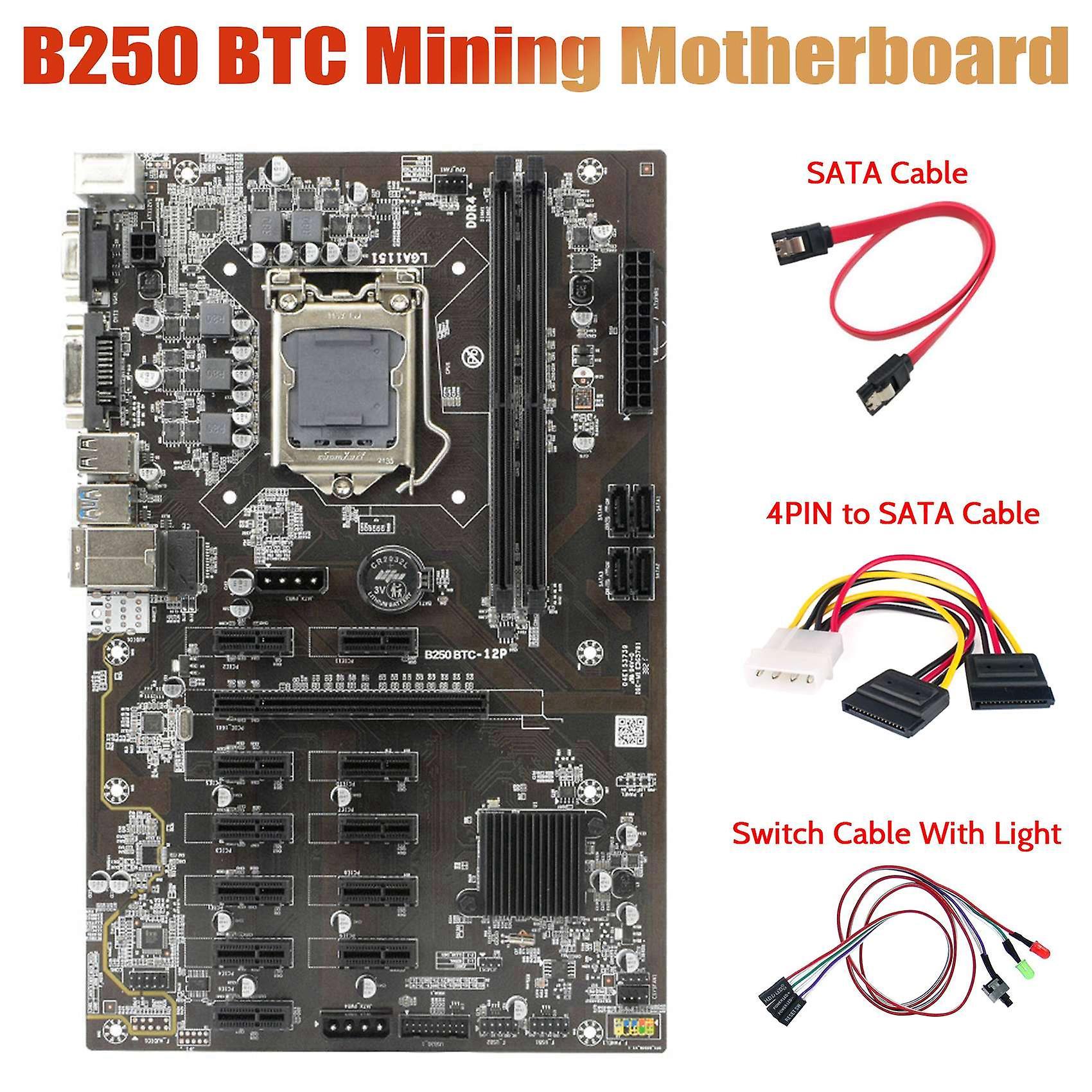 B250 Btc Motherboard with Switch Cable+4pin to Sata Cable+sata Cable