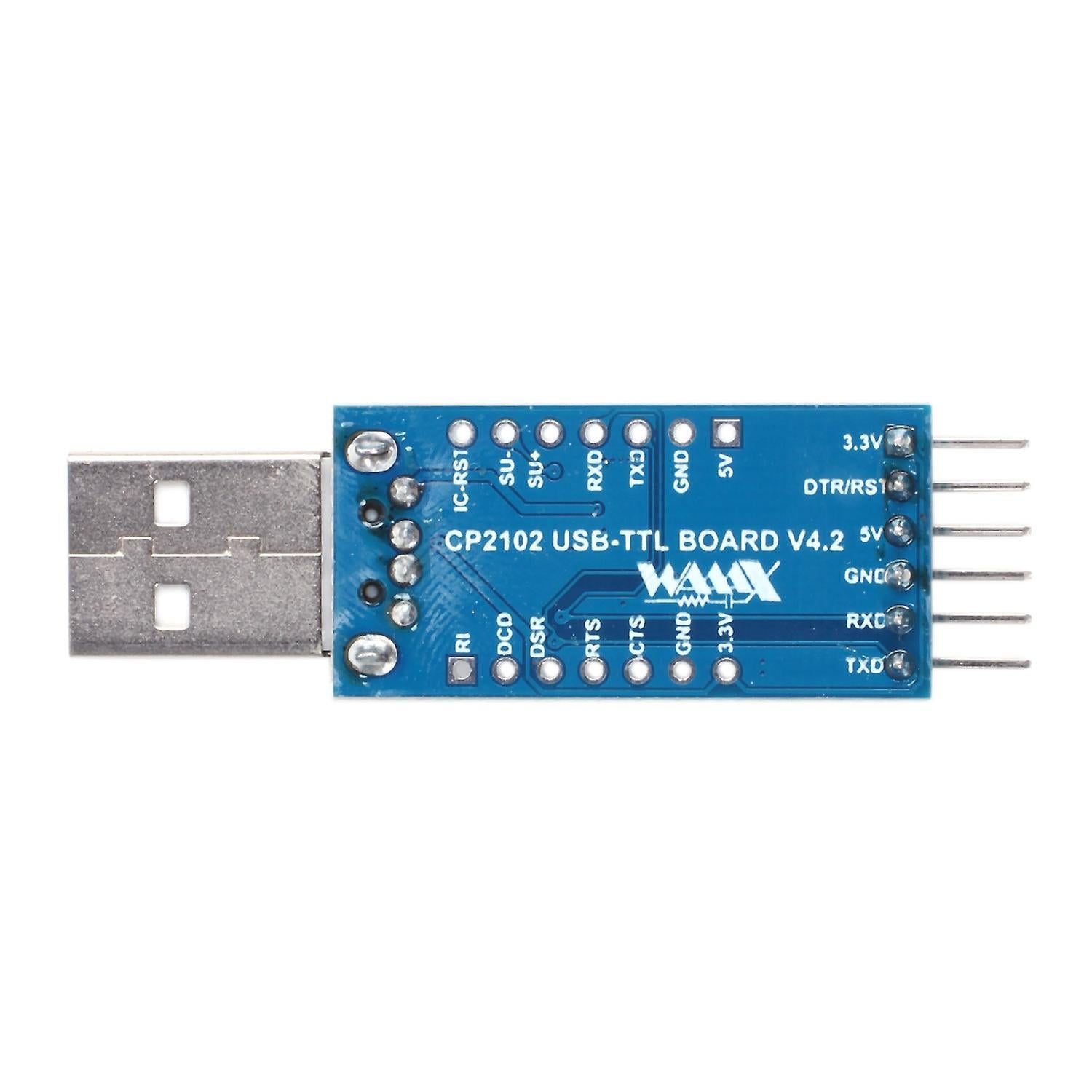 Stable and reliable chipset CP2102; USB specification 2.0 compliant with full-speed 12Mbps.Standard USB type A male and TTL 6 pin connector. 6 pins for 3.3V, RST, TXD, RXD, GND, 5V.All handshaking and modem interface signals. Baud rates: 300 bps to 1.5 Mbps. Byte receive buffer; 640 byte transmit buffer.Hardware or X-On/X-Off handshaking supported. Event character support Line break transmission. USB suspend states supported via SUSPEND pins.Temperature Range: -40 to +85 Supports Windows 98SE, 2000, XP, Vista, Window7, Linux 2.40.Material: Electric PartsNet Weight: 9gModel: CP2102Main Color: Blue, Silver ToneSize: 50 x 17mm / 2" x 0.67" (L*W)package content:1 x USB to TTL Converter1 x CableNote: Random color, don't accept the specified color.Note: Light shooting and different displays may cause the color of the item in the picture a little different from the real thing. The measurement allowed error is +/- 1-3cm.