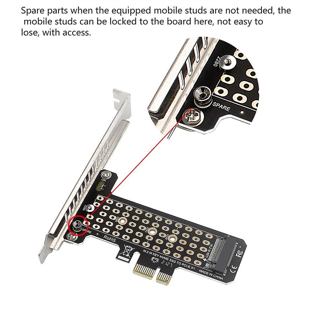 It supports 4 specifications and is compatible with 2230 / 2242 / 2260 / 2280 long and short m.2nvme protocol hard disksSupport PCIe x1x4x8x16 interface and pclex1 X4 X8 x16 motherboard card slotFast heat dissipation, high-speed operation, matrix heat dissipation holes expand the heat dissipation area, increase the heat dissipation effect, and improve the stability of the hard diskMatrix cooling hole LED indicatorPci-e4.0 down compatible with 3.0Product name: PCI-E to M.2 NVMe single-disk adapter cardModel: PH41-X1Support hard disk: M Key hard disk (NGFF is not supported)Transmission rate: 32gbpsCard slot: X1/X4/X8/X16Product PCIE: No additional power supply requiredSupport system: for Windows/Mac/ LinuxIndicator status: it is always on when it is powered on, and flashes when reading and writingMaterial:Metal + glass fibercolour:As shownPackage Contents:1 * Adapter cardOnly the above package content, other products are not included.Note: Light shooting and different displays may cause the color of the item in the picture a little different from the real thing. The measurement allowed error is +/- 1-3cm.