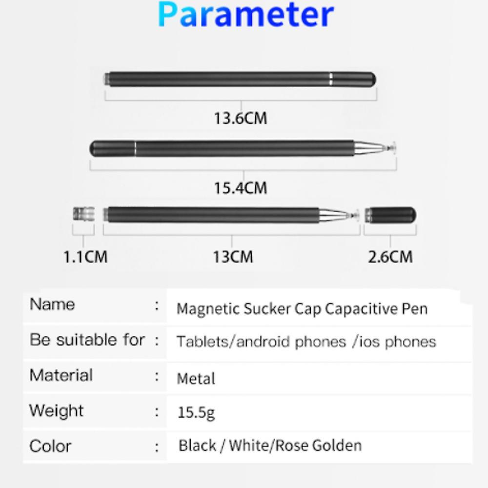 2 in 1 Uniquely design: included conductive contact suckerPerfect-fit for Tablet PC, mobile phone, good handle feeling.Name: Universal Stylus Contact PenBe Suitable for: Tablet/Android Phones/IOS PhonesColour: blackMaterial: metalSize: About 15.4cm in lengthPackage Contents:1 * Capacitive Stylus PenNote: Please do not rip or cut off the plastic disc on the end of the tip. It should be worked with the pin.For the Anti-mistouch Gloves, We only have 1 sizes. The glove might not fit well to hand sizes that are too small or too big.Only the above package content, other products are not included.Note: Light shooting and different displays may cause the color of the item in the picture a little different from the real thing. The measurement allowed error is +/- 1-3cm.